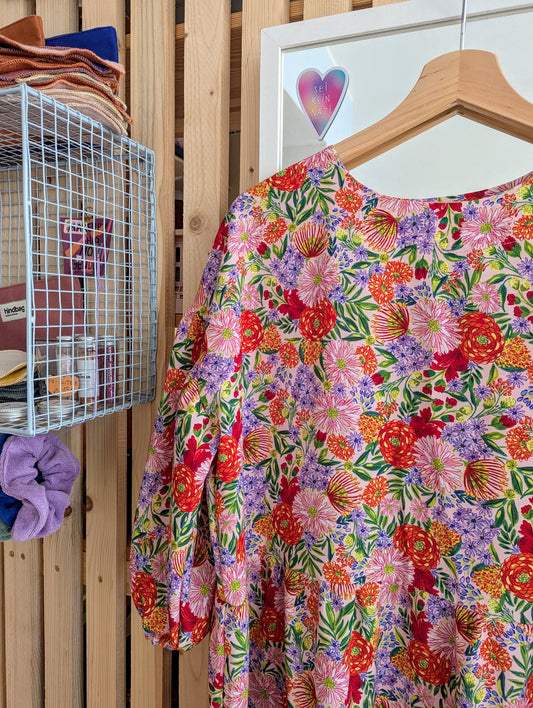 ausgestelltes Oversize Kleid aus Ecovero mit Blumenmuster(Größe S) VERSANDFERTIG