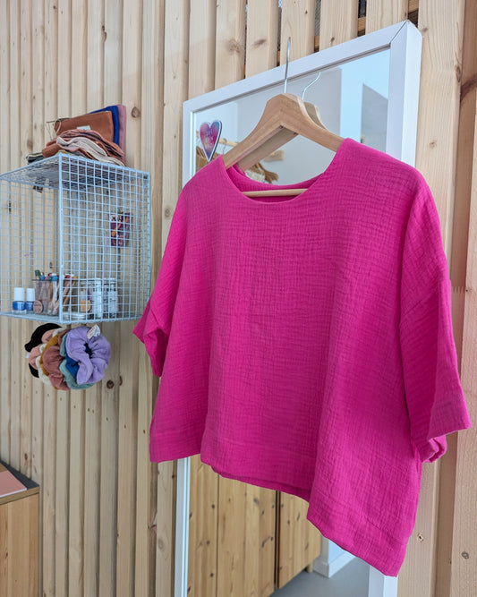 Blusenshirt aus Musselin pink (Größe M) VERSANDFERTIG