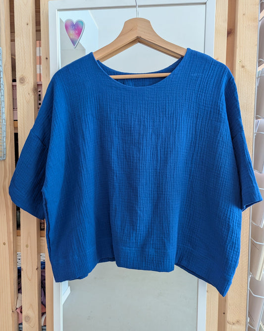 Blusenshirt aus Musselin knallblau(Größe M) VERSANDFERTIG