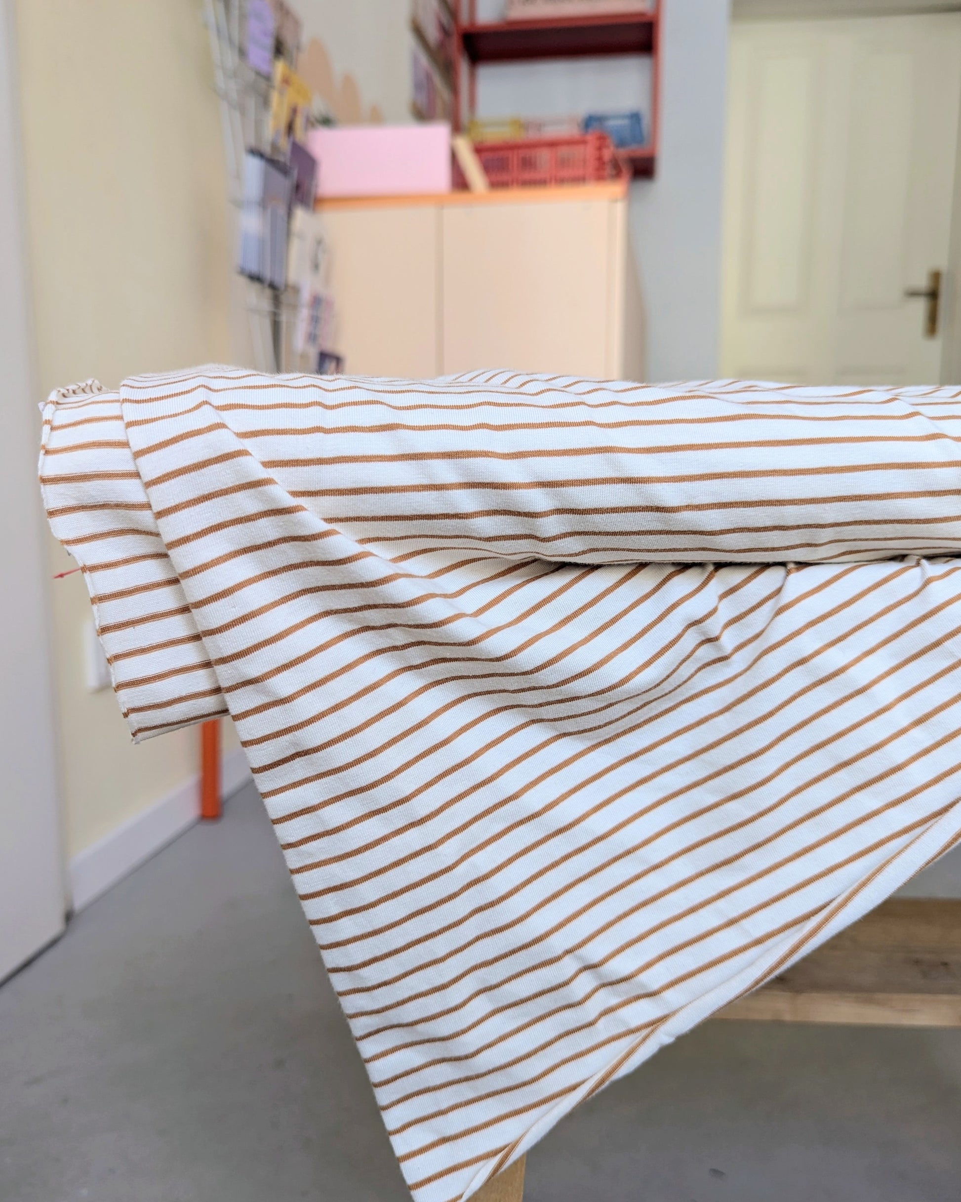Meterware Jersey mandel/weiß gestreift